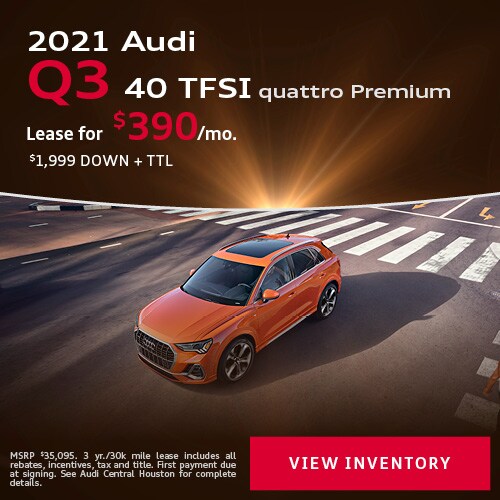 Were here to help you decide which option best fits your lifestyle so you can enjoy the exciting sophistication of being behind the wheel of. Audi Central Houston Lease Specials One of the biggest advantages of leasing is Audi Central Houstons selection of new Audi Lease Specials. These special offers are a great way to get a lot of Audi while paying less than you might think.