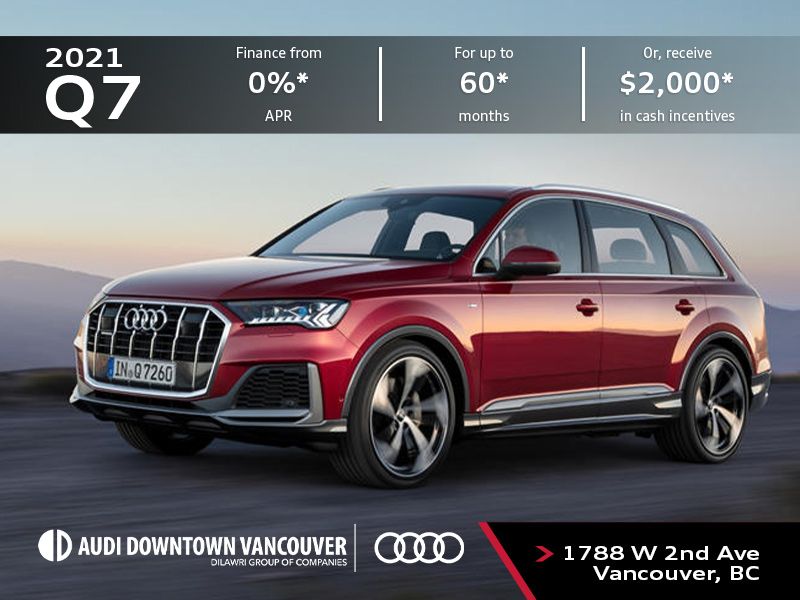 Starting at 56045 The standard features of the Audi Q7 45 Premium include 20L I-4 248hp intercooled turbo engine 8-speed automatic transmission with overdrive 4-wheel anti-lock. Will pay a 2000 Audi Credit when you purchase a new unused 2021 Audi Q7 SQ7 Q8 or SQ8 through participating dealers and use cash or finance the lease or purchase with lenders outside of Audi Financial Services from April 1 2021 to April 30 2021. 5 Offers Available Finance Offer 1 Lease Offers 2 Promotion Offers 2 Back to Incentives.